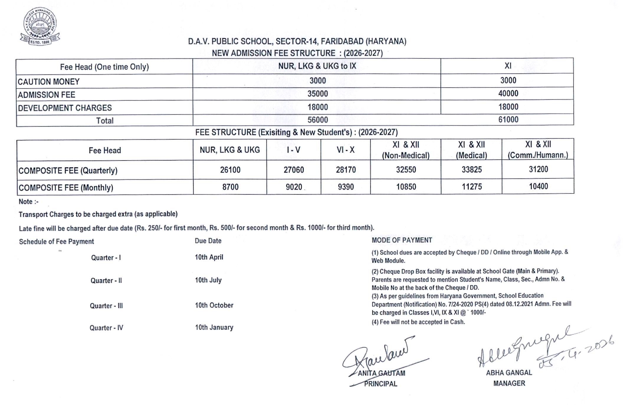 Fee Structure 2026-27 (New / Existing Students)